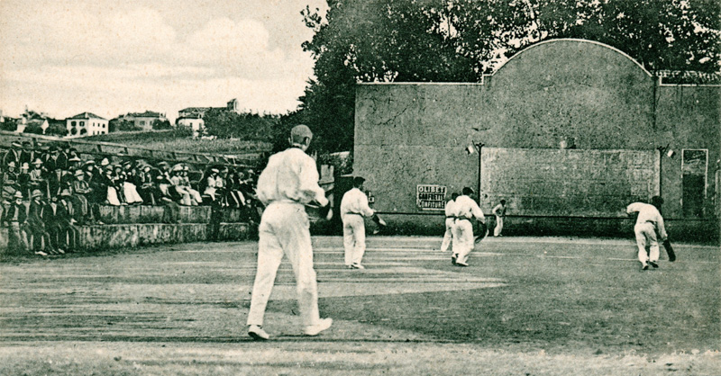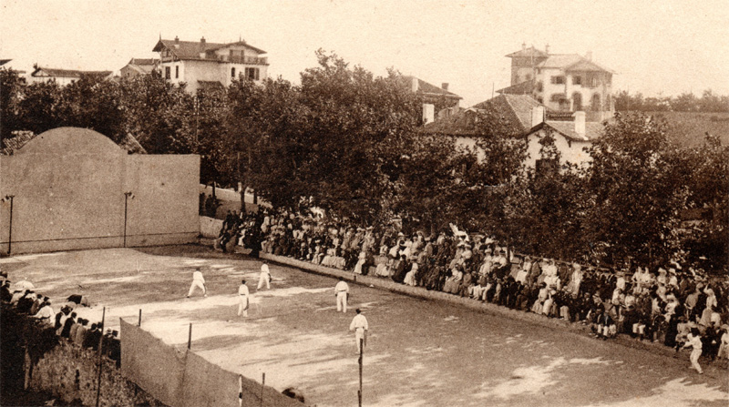 - Le Conseil Municipal après de nombreux débats passionnés décide de bâtir en 1868 un fronton à l’emplacement actuel. A la « Saison des Bains », la « Colonie Étrangère » raffole des grandes parties-défis entre pelotari vedettes.